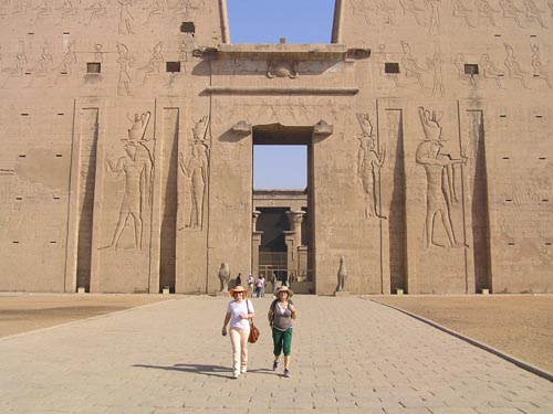 Nofre und Tete vor dem Horus Tempel in Edfu |