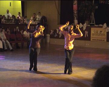 Kaum in der Halle angekommen, wurden wir schon von vielen Freunden der Tanzszene, aus ganz Österreich und aus der Schweiz, recht herzlich willkommen geheißen. Schnell einen Tisch gesucht, ein wenig Nahrung zu uns genommen, und wir starteten schon zum ersten Workshop auf die Tanzfläche. |