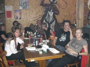 Bevor es noch losgehen sollte, wurde eifrig die Speisekarte studiert. Bisonsteaks waren angesagt, und sie schmeckten sensationell. Wer das nicht wollte bestellte sich Steakfleisch oder eben ein feuriges Chilli. Jedoch noch ehe die Speisen auf unserem Tisch einlangten wurde schon kräftig getanzt. Der Hold Your Horses heitzte uns schon vor den leckeren Gerichten richtig ein. So mussten wir dann bereits leicht transpirierend unsere Mahlzeit einnehmen. |