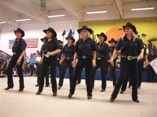 Nach einer für unsere Verhältnisse kurzen Autofahrt, trafen wir in unserem Hotel in Waldzell ein. Wir staunten nicht schlecht, als wir dort schon von den Honky's und Phoenix Tänzerinnen lautstark empfangen wurden. Auch sie waren in dem selben Hotel wie wir untergebracht. Nachdem wir unser Quartier bezogen hatten und wir uns in unsere Auftrittskluft geschwungen hatten, ging's mit dem Taxi in Richtung Messehalle in Ried. Kaum hatten wir die Halle betreten, konnten wir schon sehr viele liebe Freunde aus der Linedance Szene begrüßen. Grizzlys, Fireliners, Tumbleweed und noch viele mehr wünschten uns für unseren Auftritt alles Gute. Nach einigen Runden Warmtanzen war es dann um 17:15 soweit. " Unser Auftritt ! " Für einige ein besonderes Erlebnis, standen sie doch zum ersten mal bei so einem Event auf der Bühne. Bereits nach wenigen Takten und den ersten Tanzschritten bebte die Messehalle in Ried. Gänsehaut pur, einfach irre was sich da abspielte. Es war einfach suuuuuuuuuuuper !!! Ein besonderes Dankeschön an dieser Stelle noch einmal an alle die uns die Daumen hielten und besonders an Alex von den Fireliners für die vielen schönen Fotos |