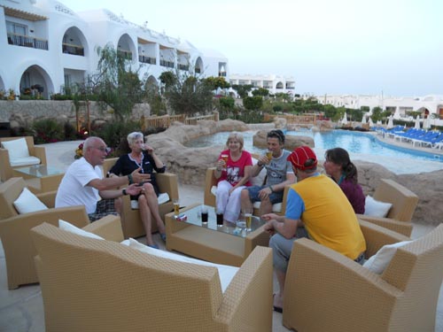 Auf Grund der durch die Unruhen in Ägypten verursachten Umbuchungen und Stornierungen, wurde unser alljährlicher, gemeinsamer Linedance Urlaub mit unseren Schweizer Freunden, heuer gleichzeitig auf zwei Kontinenten durchgeführt. Während sich der Großteil allen voran Marcel und Bruno in Side die Füße wund tanzten, verbrachte der wesentlich kleinere Teil (Silvia,Christl,Bine,Claudia,Heinz,Hans,Romeo und Dieter) den "Fortbildungsurlaub" doch noch in Sharm el Sheikh. Auf diesem Weg noch einmal schöne Grüße in die Schweiz an Marcel und Bruno !! Danke für die schöne Musik und die schönen Tänze ........... PROST !!!! |